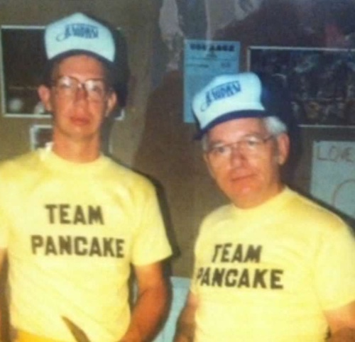 He quickly outgrew being a solo operator, hiring and training a team that allowed Chris Cakes KC to serve more customers and spread more joy across the region. By 1990, he had built a thriving operation with a full crew of skilled pancake flippers and a packed calendar of events— mostly across the Midwest, but with pancake events stretching all over the United States. Over the years, Chris Cakes has even served pancakes to Presidents, Senators, and other well-known public figures. From fundraisers, corporate breakfasts, college move-in days serving 3,000 students, to intimate wedding dinners of 100 guests, Steve has always aimed to say “yes” to events big and small.